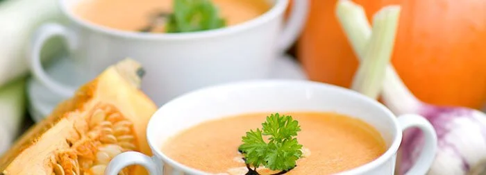 Coffee is not the only way to combat the cool fall chill. On a windy night, try pumpkin soup! Celebrate the harvest season with this creamy Autumn Pumpkin Soup flavored with brown sugar and nutmeg. Boil pumpkin, milk, onion, chicken broth, brown sugar, and nutmeg together to create a soup bursting with flavor. Before serving, add lemon juice, drizzle with balsamic vinegar, and garnish with fresh cilantro.