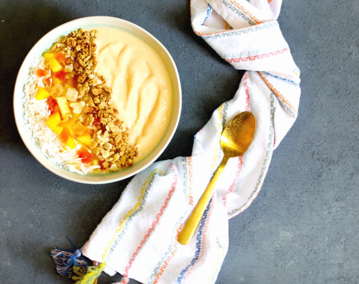 Using kefir and Greek yogurt really packs this bowl full of high-quality protein. It's perfectly balanced with a little tang and just a hint of sweetness. Top with your favorite granola, nuts and fresh fruit to make this filling smoothie bowl.