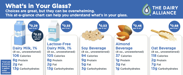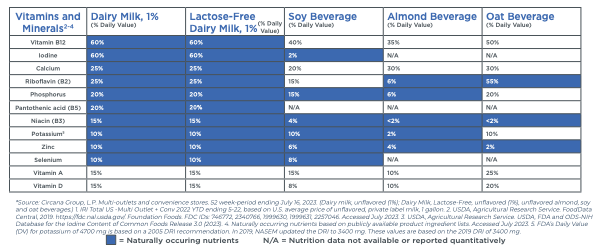 All cow’s milk varieties offer thirteen essential nutrients, including fortified vitamin D. Plant-based beverages like oat and almond aren't the same. Compare the nutrient content of cow’s milk to plant-based beverages.