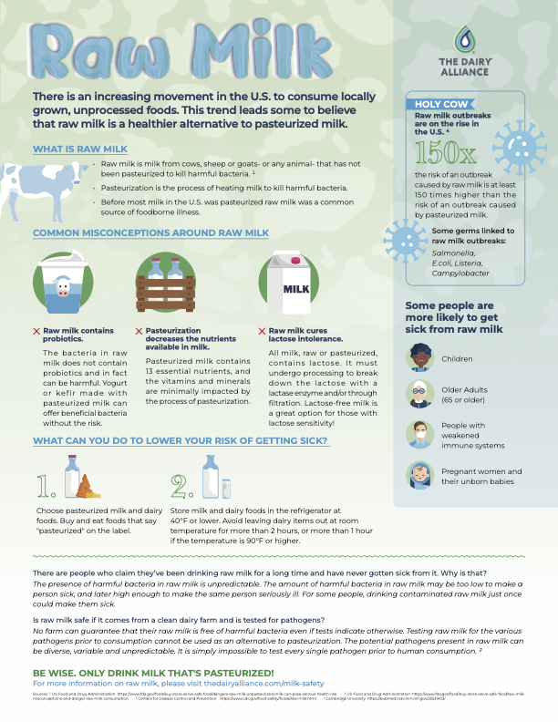 Pasteurization has been recognized around the world as an essential tool to ensure milk safety without an impact on overall nutrition. This protocol has been in effect for more than a century and is regulated by the USDA.