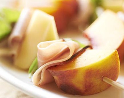 Peachy Gouda and Ham Skewers
