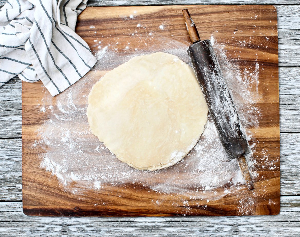 Create a simple homemade pie crust using real cow’s butter for either two regular pies or one deep-dish pie of your choosing.