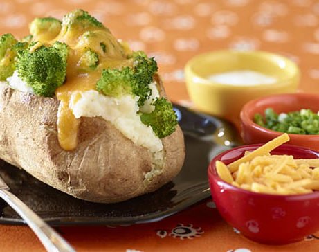 Dress up a plain baked potato by stuffing it with cheese, steamed fresh veggies and yogurt.