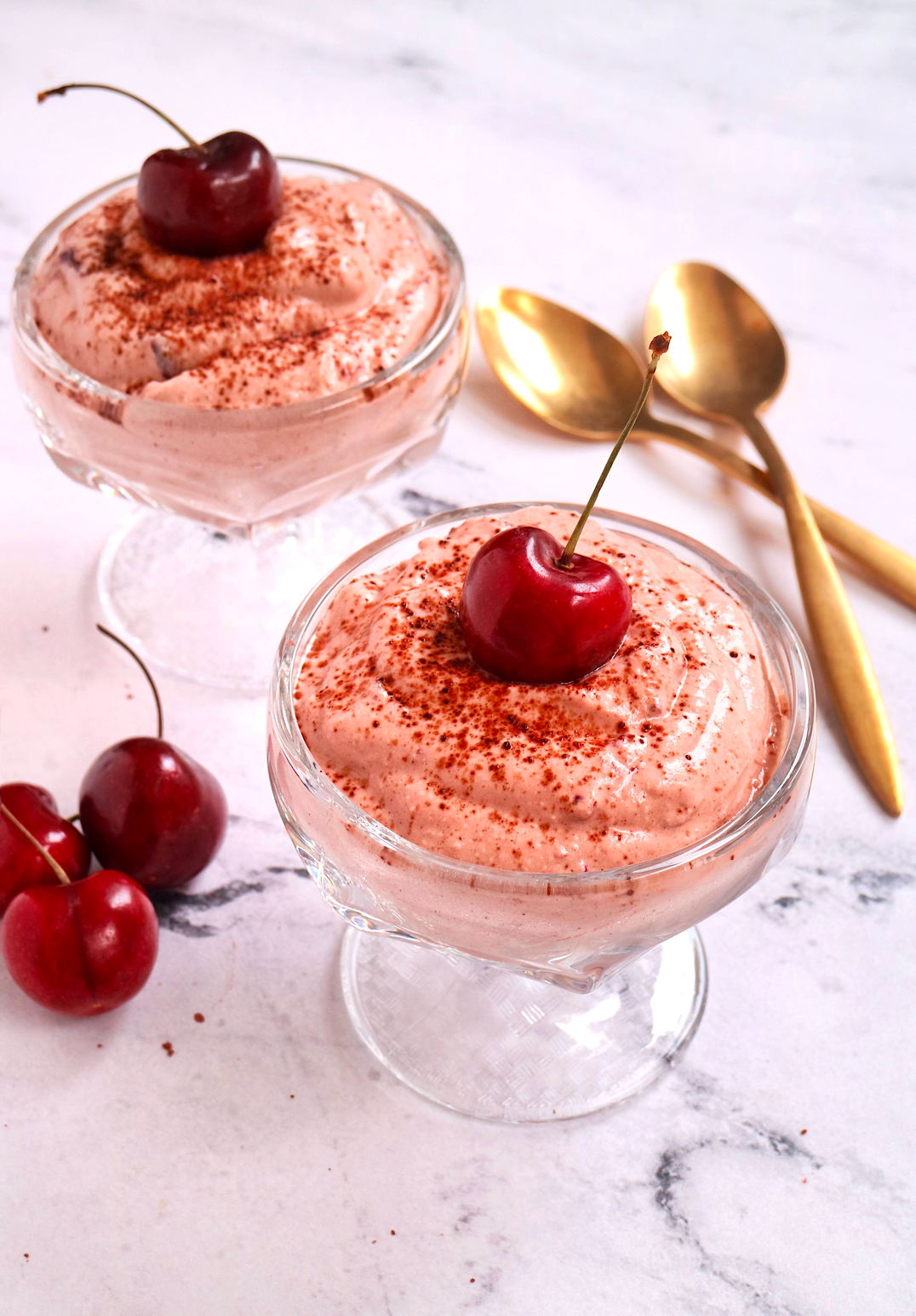 Cocoa powder, fresh cherries, mini chocolate chips